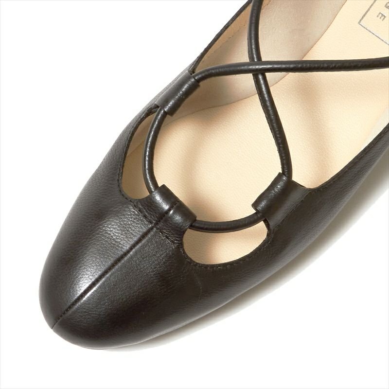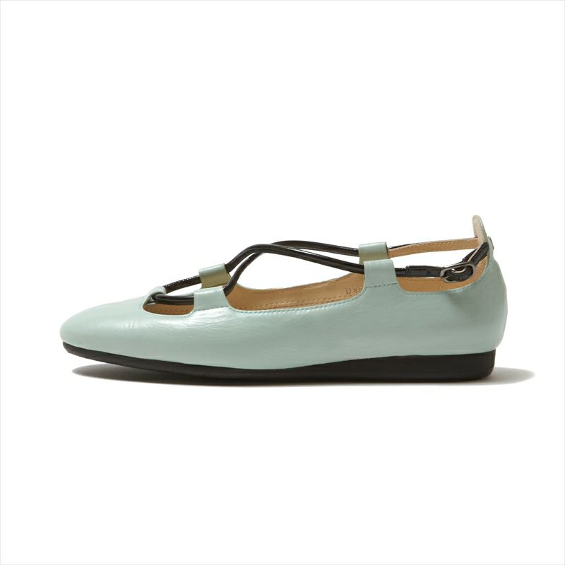 細いレザーバンドで足を支える、ギリータイプのバレエシューズのご提案です。トップラインは全体的に浅いカットにし、クロスしたレザーバンドの長さを調節する事で履く人の足に合わせる事が可能です。足にゆったりとフィットする軽快さと、フラットな軽量EVAソールが驚くほど軽く、クッション性もあるので非常にリラックスした履き心地です。今季は上品なラムレーズンカラー(BRD)とアプリコットオレンジ・ミント・七色に輝くラミネート加工が美しいプラチナが新色で登場!どのお色も心弾むカラーリングです♪