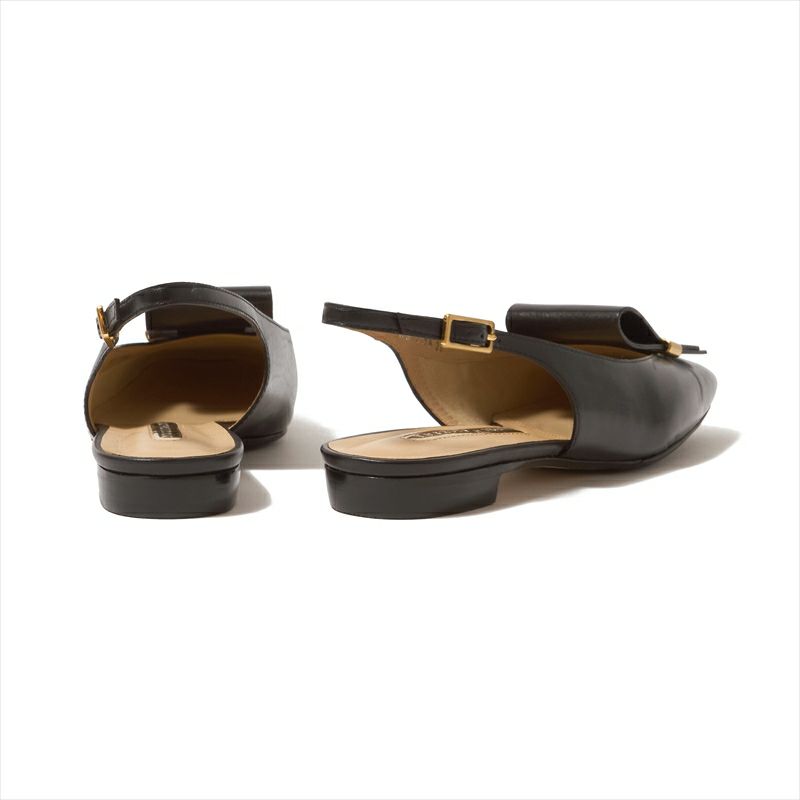 甲の立体的なモチーフがデザインポイントになったバックストラップパンプスをご紹介。それぞれ金具とレザーの色合わせによって全く異なる表情に。今季はエレガントなムードのアイテムでスタイリングにアクセントを付けるのがトレンド。上質なレザーとキラリと光るバー状の金具で価値観を示しつつ、リラックスした履き心地はキープ。履くだけでテンションが上がる、そんな1足です。