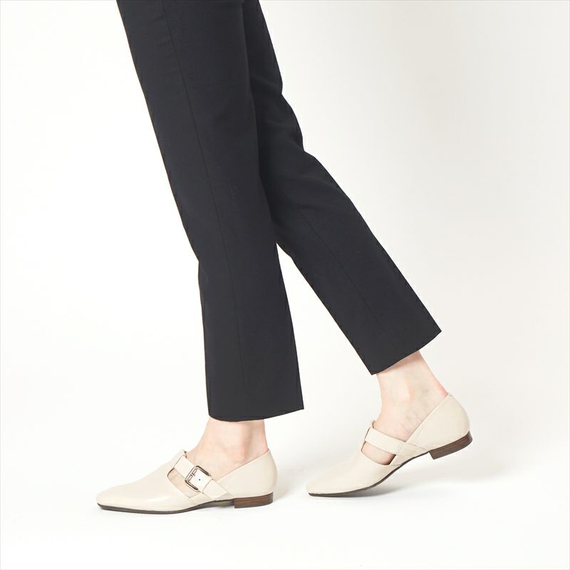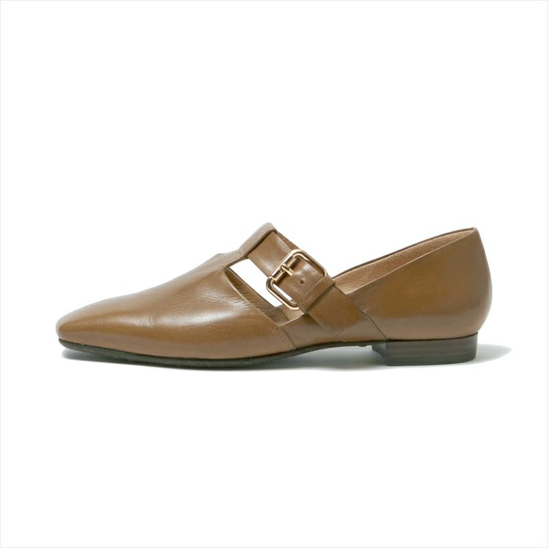 カジュアルなTストラップシューズのご提案です。艶のあるバッファローカーフレザーにバックルの華やかさがアクセント。やや大きめの木型ですが、甲バンドを調節する事で足どまりが良くなります。また、サイドをギリギリまで浅くする事で幅が広めの方でもシルエットが崩れず履く事が可能です。キチンとしたシルエットとリラックスした足入れを実現した1足です。