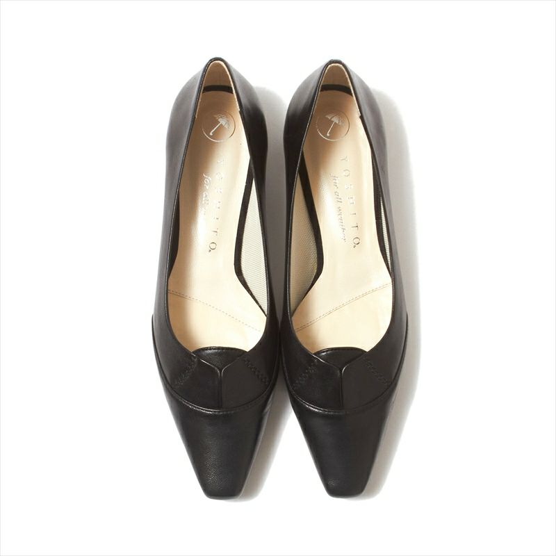 内羽根の様なデザインが新鮮な全天候型のパンプスをご紹介いたします。羽根物のデザインなので一見カジュアルに見えますが、甲が浅めに設定されているので履くと女性らしいエレガントなフォルムになります。ベーシックなカラーはお仕事にもピッタリ。今季はブラックに細いメタリック箔をストライプ状に配した、華やかで使いやすいカラーが登場。裏材には吸汗性・拡散性に優れたメッシュ素材を使用し、蒸れにくく靴内を快適に保ちます。☆完全防水ではございません。