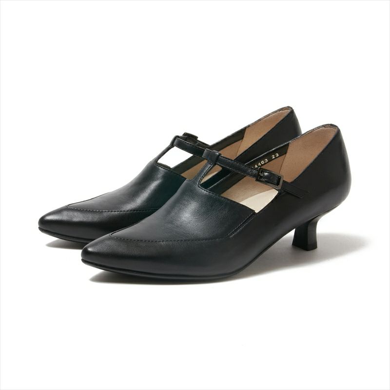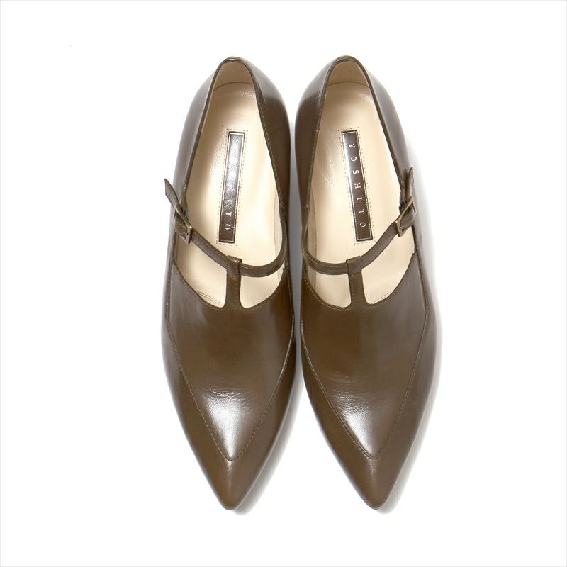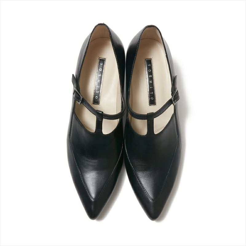 ヨシトで人気の甲薄ポインテッドトゥ木型から新デザインが登場。甲が深めのカットにTストラップを施したデザインは秋のニューベーシックと謳いたいくらい。甲部分には両サイドにゴアを仕込んでいるので、甲高さんにも対応可能なのが嬉しい。甲の高さを気にせずお使い頂けます。また、Tストラップデザインから足が覗くデザインは抜け感が出るので甲深デザインでも通年お使い頂けますし、これからの季節にタイツ合わせも素敵です。素材は合わせやすいスムースのキッドレザーを使用し、どんなシーンでも使いやすいカラー展開に致しました。