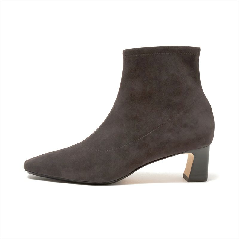 アンクル丈のストレッチブーツは限界までそぎ落とされたシンプルなデザインが魅力。大人っぽいスクエアトゥのミドルヒールが装いを選ばない万能ブーツです。もっちりしたイタリアンストレッチラムレザーの質感が価値観のある仕上がり。また、ストレッチブーツの良い点は足首に負担のないその柔らかさ。本革のストレッチブーツの良さをぜひお試しくださいませ。