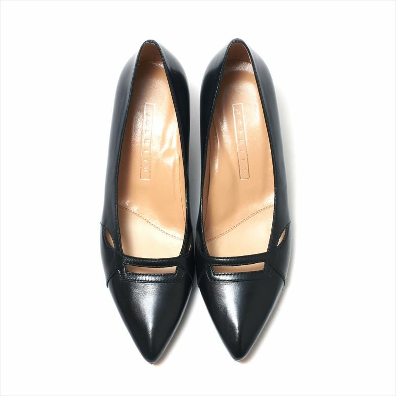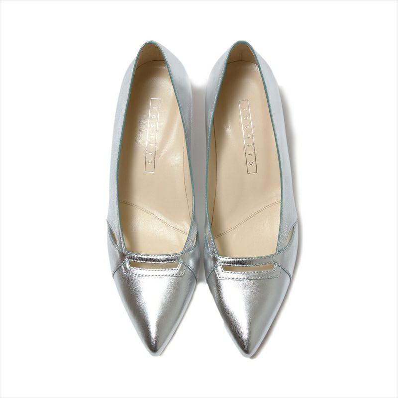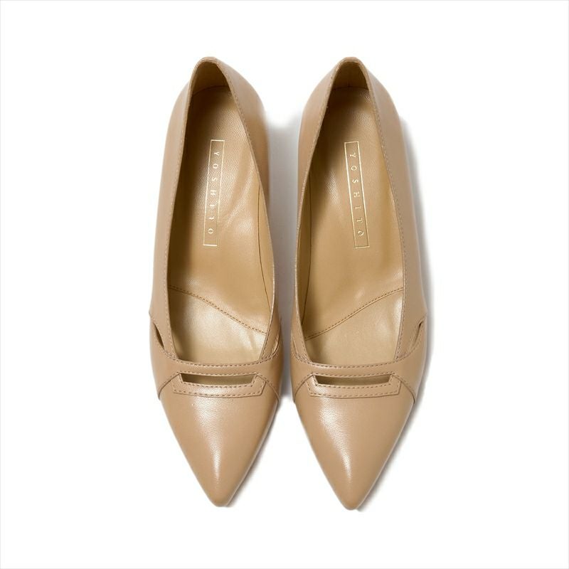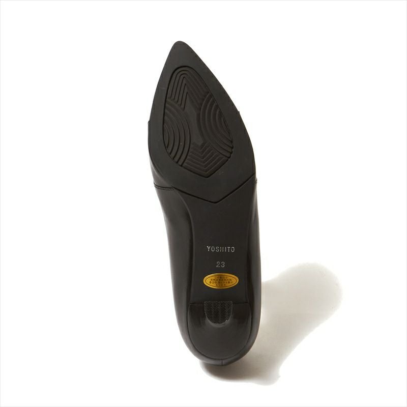 程よくデザインの入った履き心地の良いパンプスは使い勝手も◎どんなスタイリングにも合わせやすく、どこか印象に残る足元に仕上がります。長めのポインテッドトゥの先が少し膨らんでいるのは爪先が当たらない様に設計されているから。指が長めの方や爪が上向きの人にも安心の木型です。本底は返りの良いラバーソールを採用。従来のヒールよりスッキリしたシルエットに改良されたヒールは4.5㎝という程よいヒール高で人気があります。柔らかなイタリアンキッドレザーを使用する事で、履くほどに足に馴染む一足です。