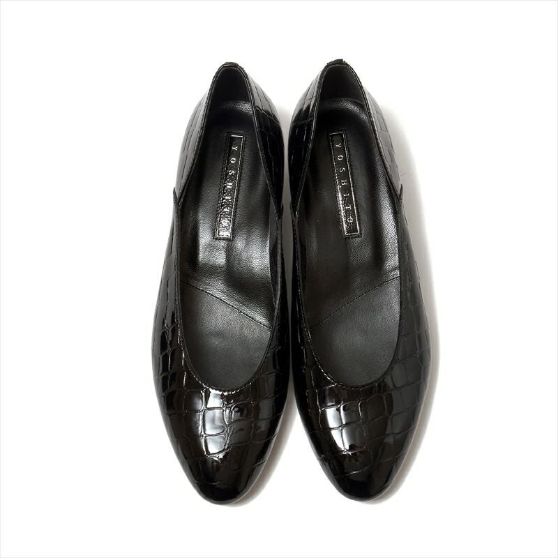 子供っぽくなりがちなラウンドトゥも、ヨシトの手に掛かれば洗練された大人フォルムに。3㎝ヒールの程よいヒール感も◎サイドがセパレート風のカッティングになっている事で、ゆったりした履き心地を実現。また、非常にソフトなイタリアンカーフレザーを使用している為、足にしっかりとフィットします。オケージョン対応のパンプスをお探しの方にもおススメです。似たデザインでY5804というプレーンパンプスがございますが、同じ木型でも履き心地がやや違いますので、履き比べて頂くとご自身にあった1足を見つけられるかと思います。今季は新色としてクロコのエナメルを採用。型押しのエナメルは硬くなりがちですが、このイタリアンレザーは足にフィットする極上の履き心地です。