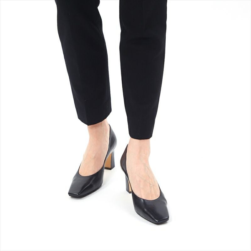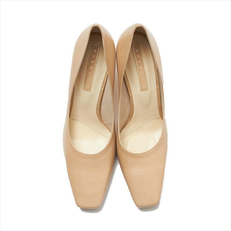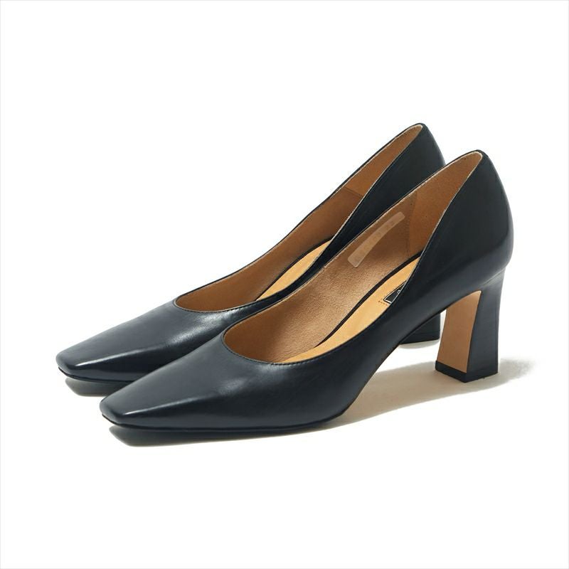 新しい7㎝ヒールのスクエアトゥ木型です。プレーンパンプスですが、計算された長めのトゥラインとサイドを浅めのカットラインにする事で足がスラっとキレイに見えます。太いフレアヒールにシャープなスクエアトゥがトレンド感がありながらモードなエレガンスとして表現されています。BRM以外はヨシトで定評のあるソフトなイタリアンカーフを使用しており、素上げの透明感が美しい上質な1足。ヒールは甲革と共巻きになっており、ヒールにかけて一体感のある仕上がりになっております。