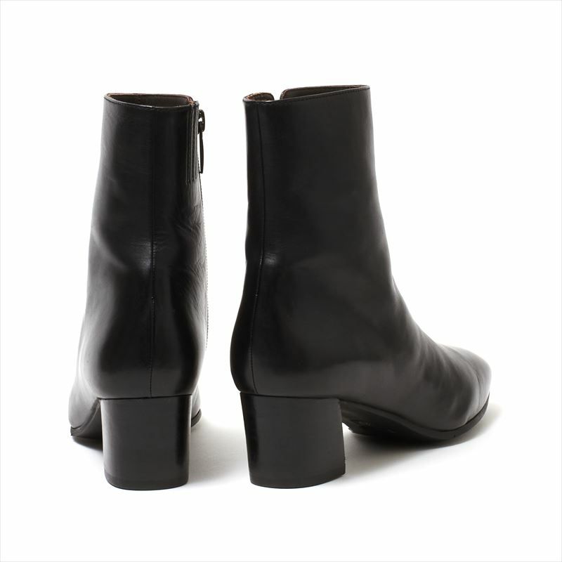 毎年人気のショートブーツから新色が登場です。今季の新色は非常にダークなブラウンカラー。センターに切り替えのあるシンプルなショートブーツはモードな印象の台形ヒールをアクセントに。足首がスッキリとしたラインですが、柔らかなイタリアンソフトカーフレザーを使用している為、足をふんわり包み込むような履き心地のブーツです。