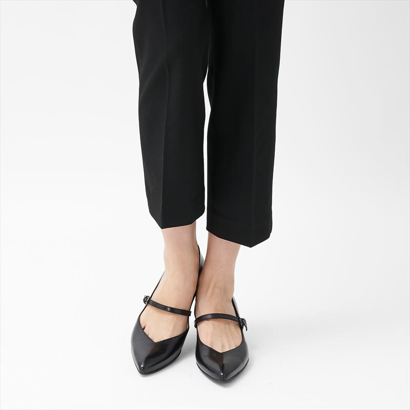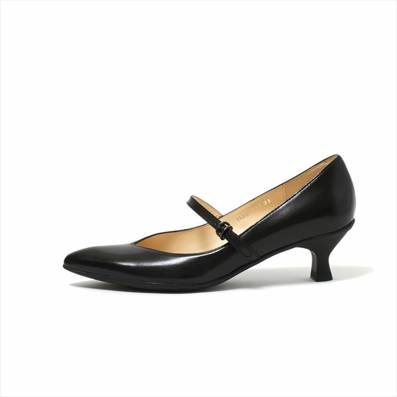 ヨシトで長く愛されるワンストラップパンプス。履き口のVカットを少し浅めに設定することで、幼くなりがちなメリージェーンも上品な大人の足元に仕上げます。前滑りしやすい方は甲にストラップが一本あるだけでパンプスがグッと履きやすくなるのでぜひ一度お試し頂きたい1足。また、ストラップを外さずにスッと履けるのも嬉しいポイント。一度自分の長さで調整しておけば毎朝安心です。長めのトゥ先が少し膨らんでいるのは爪先が当たらない様に設計されているから。指が長めの方や爪が上向きの人にも安心の木型です。本底はモールドソールを採用し、足裏全体を支える様な履き心地を得られます。4.5㎝のミドルヒールはお仕事でヒールを履かれる方に長く愛されているヨシト定番のパンプスです。