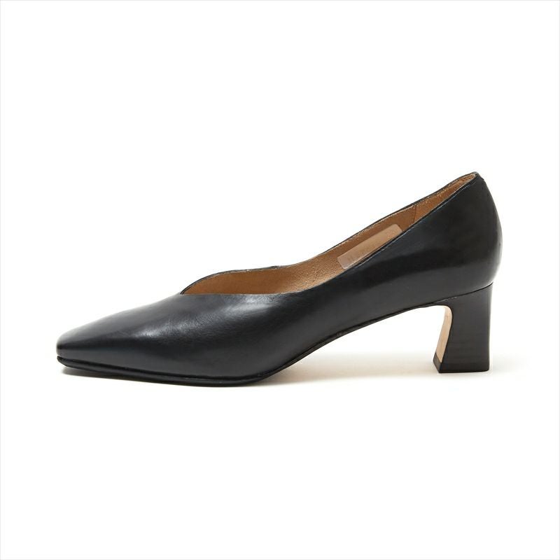 革を貼り合わた切りっぱなしのトップラインが洗練された印象の深めカットプレーンパンプスです。革は非常にソフトなイタリアンカーフレザーを使用し、足に吸い付くような履き心地。本底は今回から採用した前方ゴム・踏まずから後ろが革になっている新しい形状を採用。革底よりも返りが良く、革底の様な気品があります。今季はベーシックカラーと共に昨年人気だったサテンの様な上品な輝きのメタリックレザーからネイビーが新登場です。