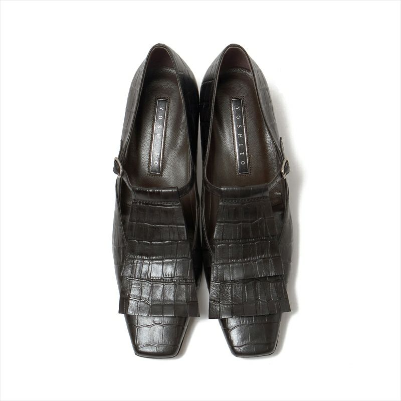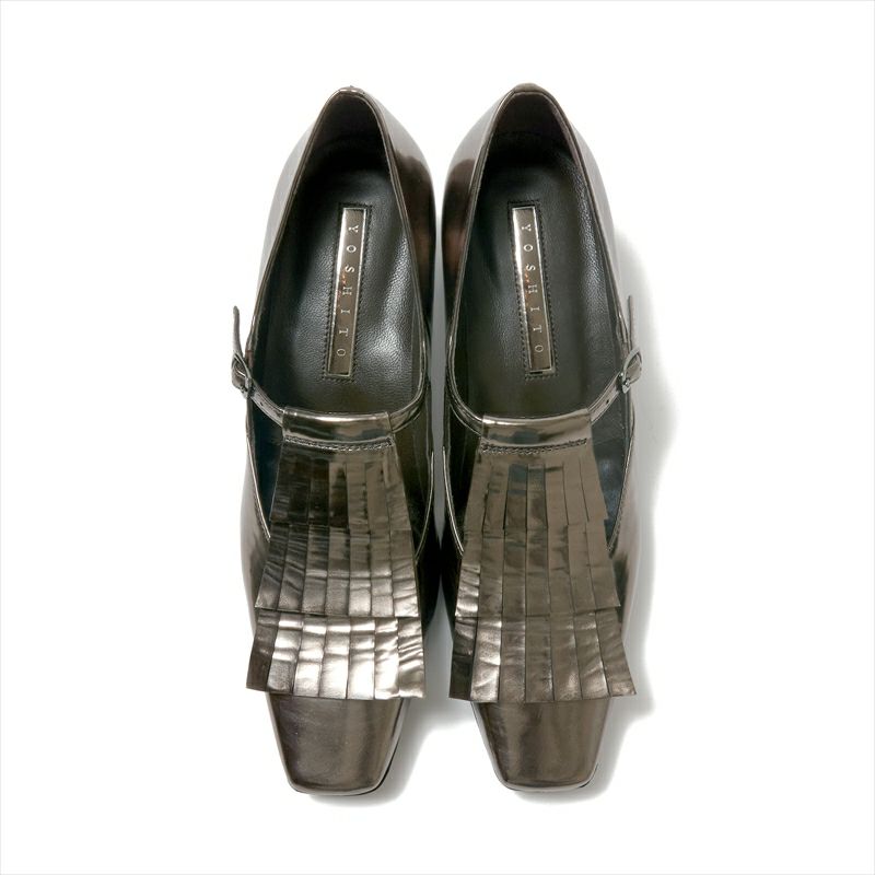3段のフリンジディティールが遊び心いっぱいのミドルヒールパンプスをご紹介。通年お使い頂けるデザインですが、ストラップパンプスの様なイメージとフリンジ部分が甲を覆う事によってブーティの様な甲深パンプスのイメージにもなります。ストラップ部分にはゴムが入っている為、そのまま脱ぎ履きが可能。アウターのボリュームにも負けない存在感で足元に華を添える1足です。ストッキングはもちろん、タイツとの合わせも◎