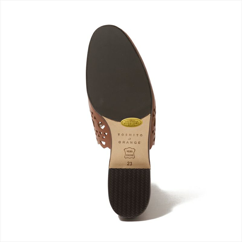 一枚の革にレースの様な模様を穴飾りで表現した、非常に手の込んだミュールサンダルをご紹介。トップラインが深く設定されているので、ミュールはパカパカして苦手、という方にも歩いた際に脱げにくい様にしています。素足が透けるので抜け感があり、ワイドパンツとの相性が◎リラックスしたスタイリングに加えるだけで大人の上質コーデが完成する、そんなミュールです。