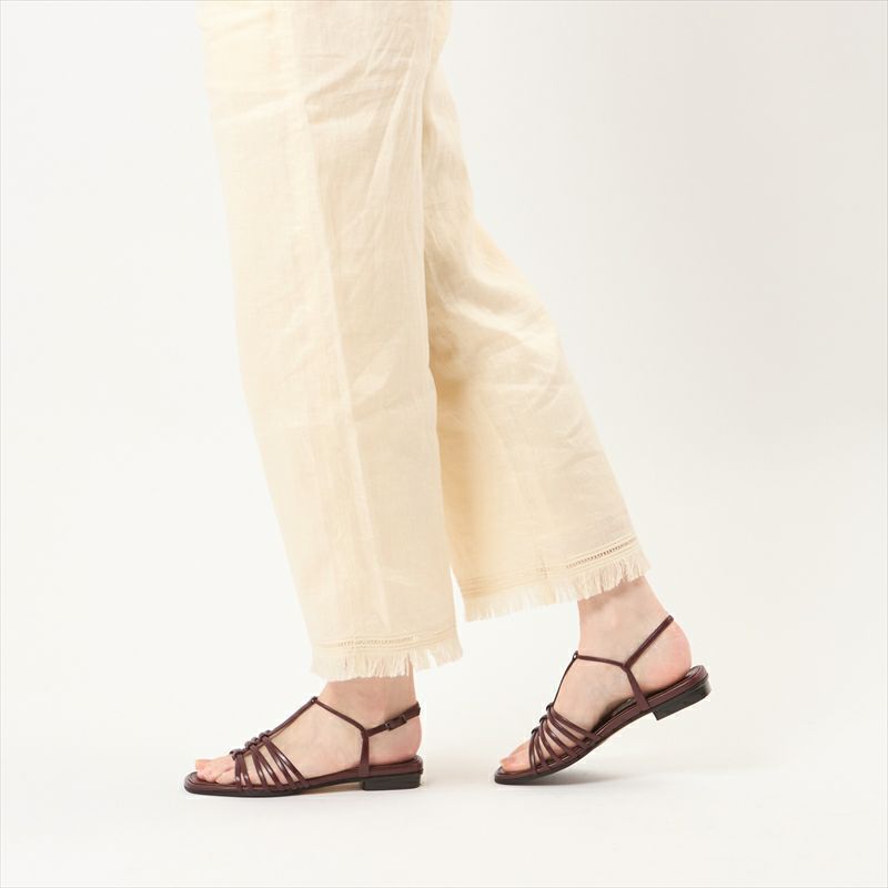 近年定番化したスポーツサンダルを今年らしいコーディネートに更新する為にご提案するエレガントな印象のペタンコサンダルをご紹介いたします。沢山の細バンドで足を包み込む為、見た目以上に安定感があります。また、上質なイタリアンレザーを全面に使用する事で非常に価値観のある仕上がりに。盛夏(猛暑)にサラリとロングワンピースの足元に合わせたい1足です。
