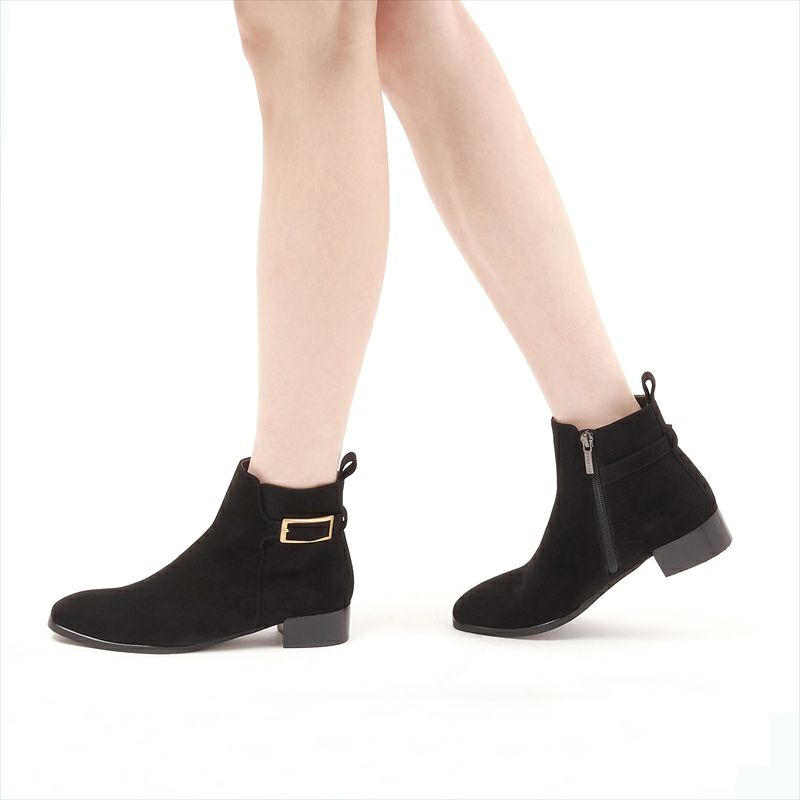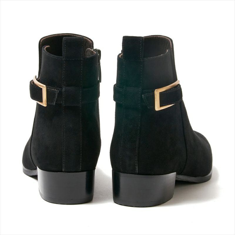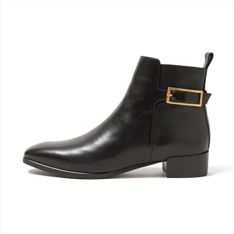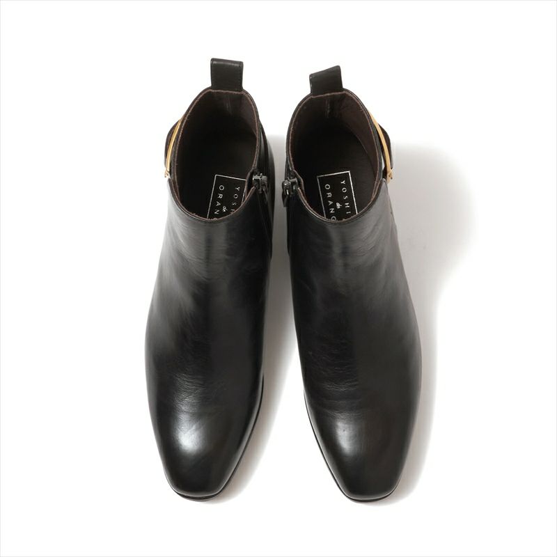 アンクル丈のシンプルなショートブーツに長方形のゴールドバックルで華やかさを出しました。程良い丈感と柔らかな履き心地が毎日履きたくなる履き心地です。スムースレザーはヨシトで人気の非常に柔らかなイタリアンソフトカーフを使用。シルキーは見た目通りのソフト感です。本底は主張はせず、しかし柔らかくしなやかなクレープ素材を使用。丁度良いヒール高も好印象のキレイめショートブーツです。
