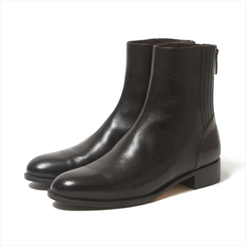 トラッドな印象のシンプルなサイドゴアブーツが登場です。程よいヒール高と筒丈がスタイリングしやすく、マニッシュになり過ぎない女性らしいシルエットが◎バックファスナー仕様にする事で両サイドがゴア仕様が可能になり、ストレスフリーの履き心地に。人気の透明感のあるイタリアンスムースレザーの2色に加え、キャメルシルキーを展開。今季の気分にピッタリの1足です。
