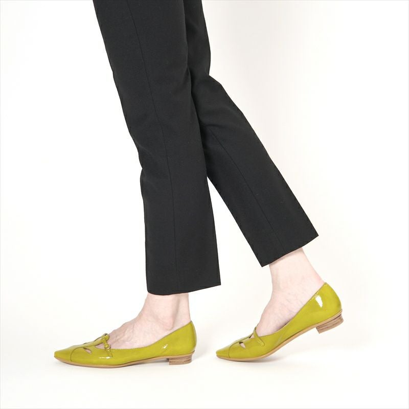 Tストラップとカットワークを合わせた春夏らしいフェミニンなデザインパンプスをご紹介。意外と甲部分は深い位置で押さえられ、またベルトで調整も出来るのでパンプスが苦手な方にも◎非常にソフトなシワエナメルは、シルキーをエナメル加工している為本当に柔らかな履き心地。使いやすいライトグレーとこれからの季節足元にフレッシュさをプラスするライムカラーをご用意。