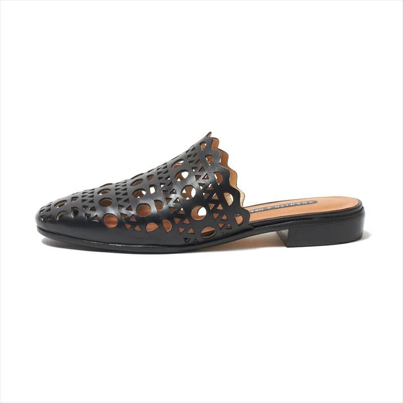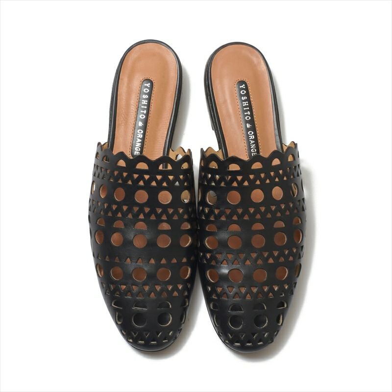 一枚の革にレースの様な模様を穴飾りで表現した、非常に手の込んだミュールサンダルをご紹介。トップラインが深く設定されているので、ミュールはパカパカして苦手、という方にも歩いた際に脱げにくい様にしています。素足が透けるので抜け感があり、ワイドパンツとの相性が◎リラックスしたスタイリングに加えるだけで大人の上質コーデが完成する、そんなミュールです。