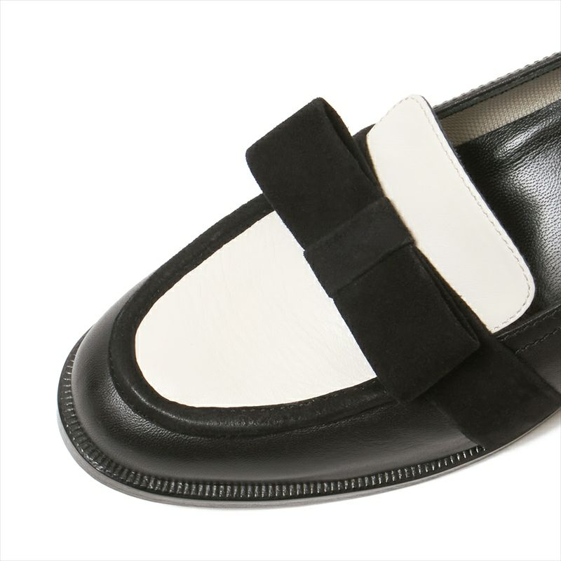 全天候型のモカシューズからフェミニンなリボンデザインをご提案いたします。リボンは甘くなり過ぎない様にバランスをとり、スムースとシルキーコンビがシックな中に華やかさをプラスしてくれます。ソールにはvibram社の軽量ソールを仕様して軽やかな履き心地。裏材には吸汗性・拡散性に優れたメッシュ素材を使用し、蒸れにくく靴内を快適に保ちます。☆完全防水ではございません。