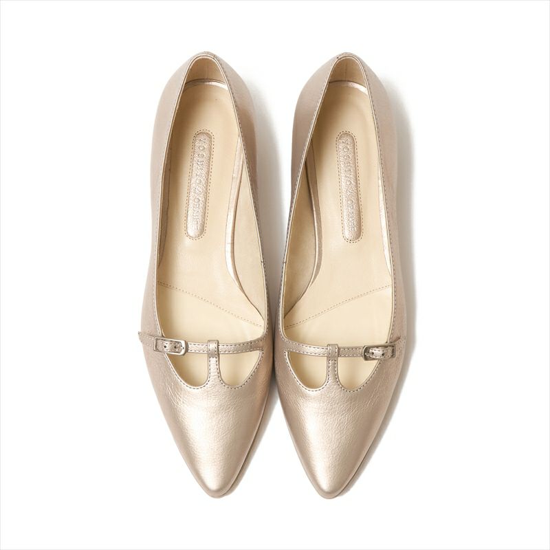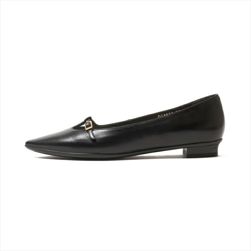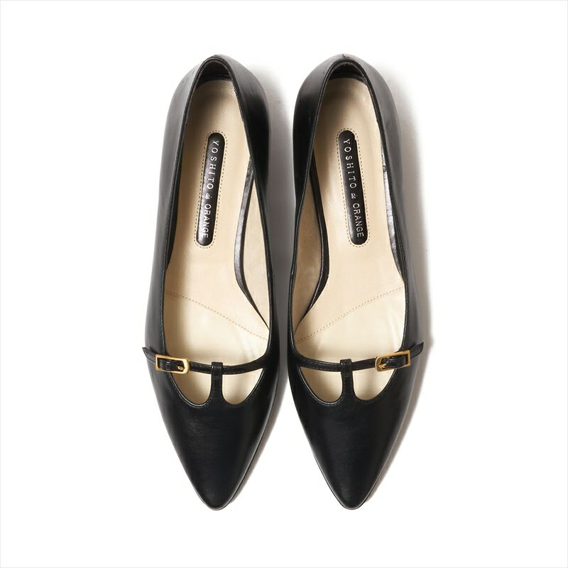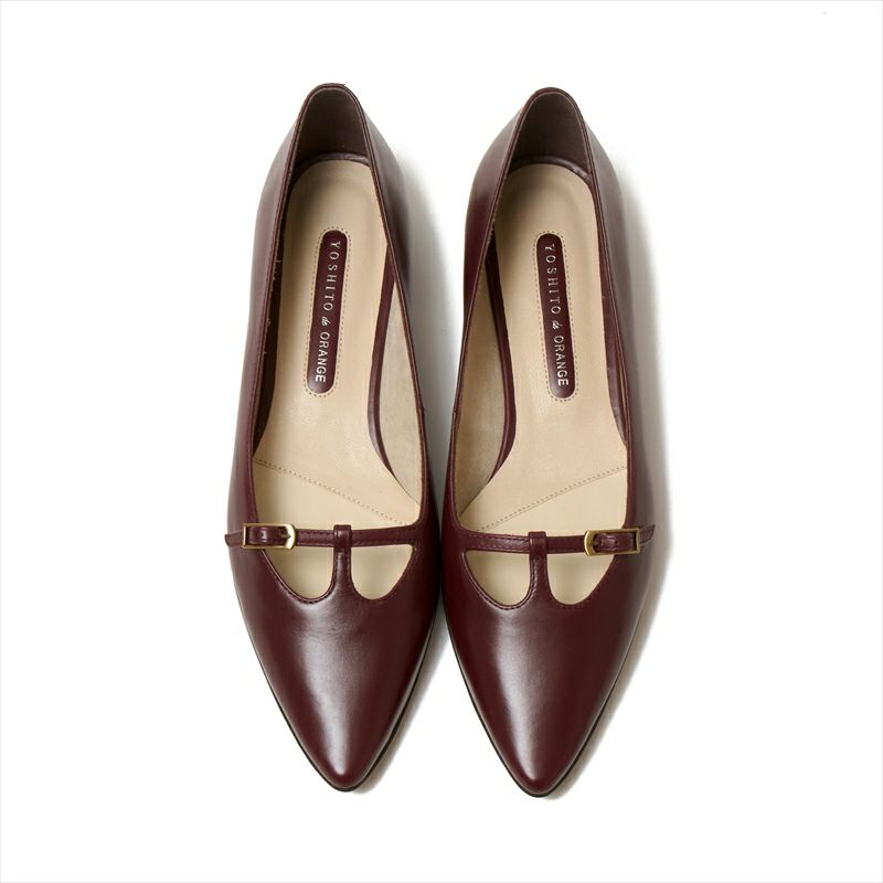 上品なストラップデザインを美しいイタリアンレザーで作る事によってベーシックでありながら価値の高い1足へと仕上げました。甲が浅めのデザインですが、ストラップがある事によって安定感があります。小さなバックルがキラリと光るのもエレガント。上品なカラーとソールカラーをアッパーマッチにする事で一体感のある仕上がりに。爪先が削れやすいポインテッドトゥでも、やや被りのあるモールドだと安心感があります。