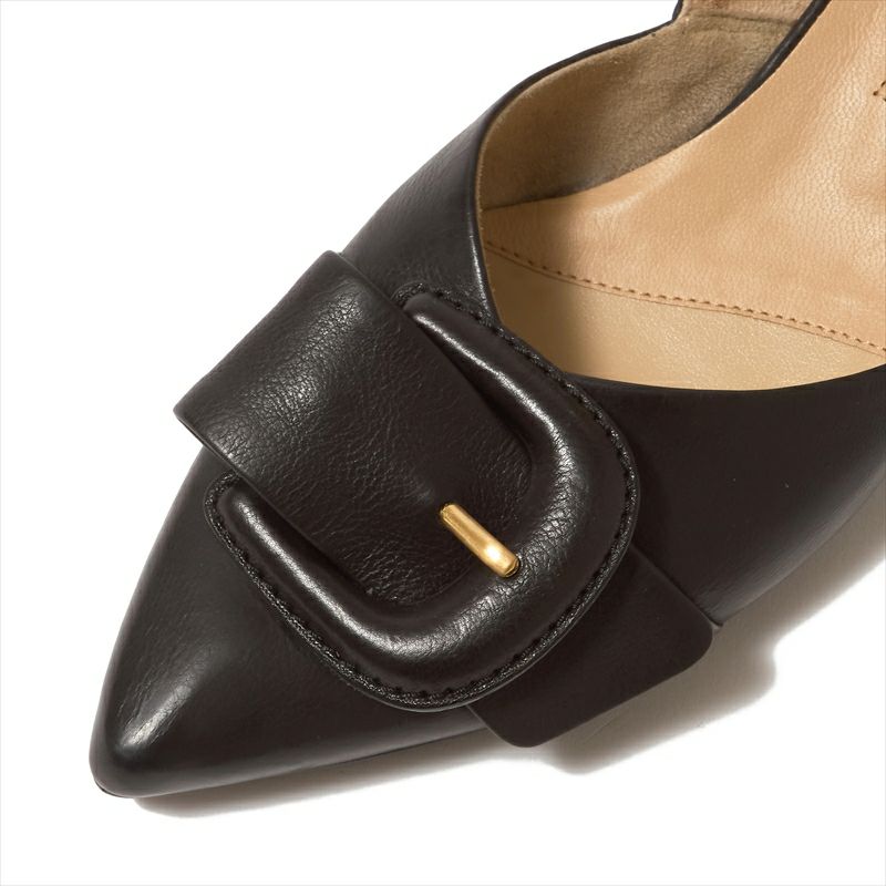 足をキレイに見せるセパレート風のカッティングに、手の込んだ革巻きバックルを配したオシャレなパンプスが登場です。甲深くを押さえるカッティングになっている為、足を包み込む様な履き心地。安定感も◎です。黒とCAMが同色ですが、ネイビーはステッチを白にする事で爽やかに、エクリュベージュは淡いパイソンの型押しで印象的に仕上げました。