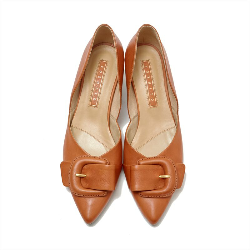 足をキレイに見せるセパレート風のカッティングに、手の込んだ革巻きバックルを配したオシャレなパンプスが登場です。甲深くを押さえるカッティングになっている為、足を包み込む様な履き心地。安定感も◎です。黒とCAMが同色ですが、ネイビーはステッチを白にする事で爽やかに、エクリュベージュは淡いパイソンの型押しで印象的に仕上げました。