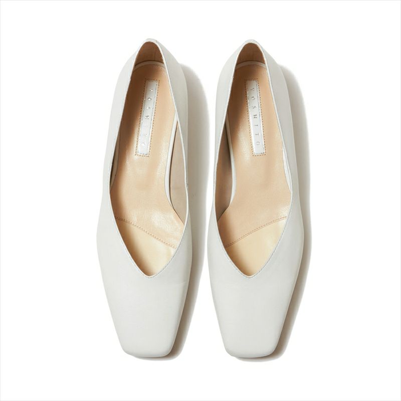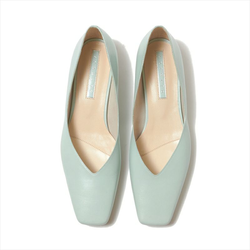 2.5㎝ヒールの高さと、しっかりスクエアトゥが好感度の高い木型から新しいプレーンパンプスが登場。足をしっかりと包み込みながら足をキレイに見せてくれるVカットラインは驚くほど履きやすい。サイドは女性らしいアールを描きながらも深めのカットになっているのでホールド感のある履き心地です。ヒールの形状もリニューアルしました。今季は繊細なキッドレザーを使用し、春らしいシャーベットカラーで展開です。