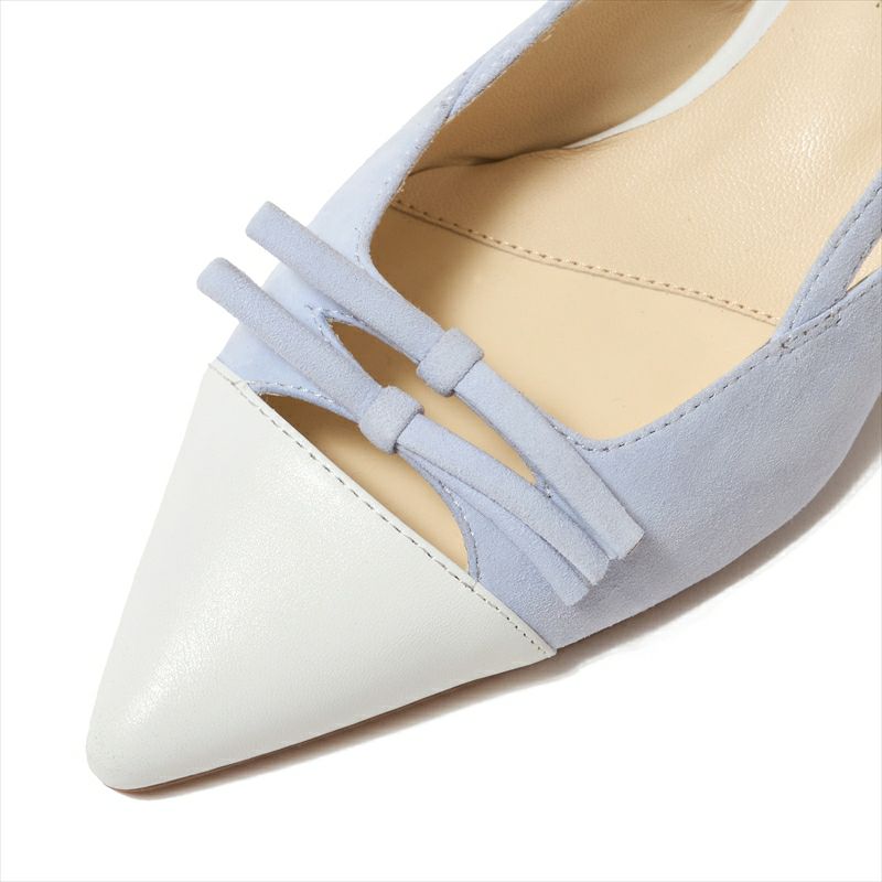 トレンドのモチーフである細リボンが新鮮なバックストラップパンプスをご紹介。ヨシトでは珍しいカラー・素材共にコンビネーションで仕上げました。程良い遊び心がありながらも上品に仕上がるカラーリングはテンションが上がります。メタリックは素材を統一して落ち着いた使いやすい印象に。ドレスアップの足元にもおススメです。