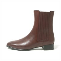 サイドゴアブーツが欲しくて色々と試しましたが、いわゆる普通のサイドゴアブーツが似合わず諦めていましたが、こちらはゴム部分が革で飾られていることと使われている革の種類できれいめなサイドゴアブーツになっています。カジュアルすぎず使いやすそうです。幅が2Eとなっていますが細めな感じがします。